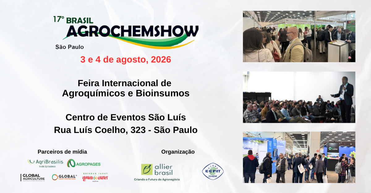 O 17º Brasil AgrochemShow será realizado em novo endereço, no Centro de Eventos São Luís, em São Paulo, nos dias 3 e 4 de agosto de 2026.